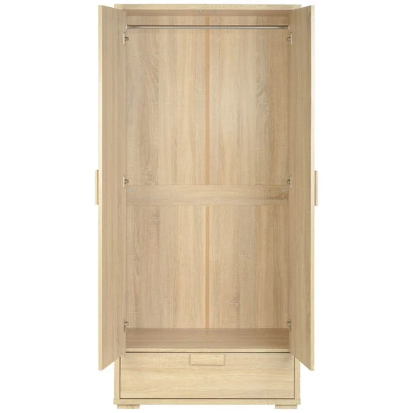 The Cambourne 2 Door 1 Drawer Wardrobe will add an element of rustic style to your home. This wardrobe features plenty of storage space for all your valued possessions with ample drawer and hanging space inside. The Cambourne range is finished in a light sonoma oak which will bring a fresh aura to your room.