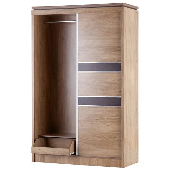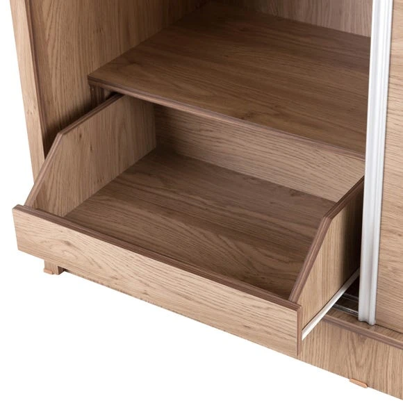 Keep your clothes clean and tidy with the Charles Double Wardrobe. With its smooth oak veneer, subtle walnut trim and contrasting silver coloured handles, this wardrobe will cut a stunning figure in any bedroom. The wardrobe has plenty of hanging space for all your coats, shirts and dresses.
