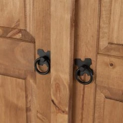 Featuring rustic, Mexican influence in the design, this self-assembly wardrobe features a stylish curved top. Crafted from solid pine, this wardrobe features complementing metal hardware.
