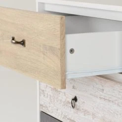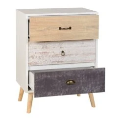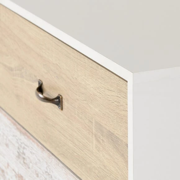 With its striking, characterful style, the compact Nordic 3 drawer chest offers a quirky take on a classic design. This self-assembly chest of drawers comes complete with Scandi-style legs and is finished in a white colourway with distressed drawer fronts, each with a unique finish and handle style.