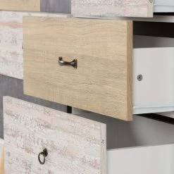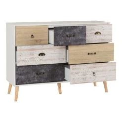 Offering plenty of useful storage space, the Nordic merchant’s chest offers a quirky, characterful take on a classic design. This self-assembly chest of drawers comes complete with Scandi-style legs and is finished in a white colourway with distressed drawer fronts, each with a unique finish and handle style.