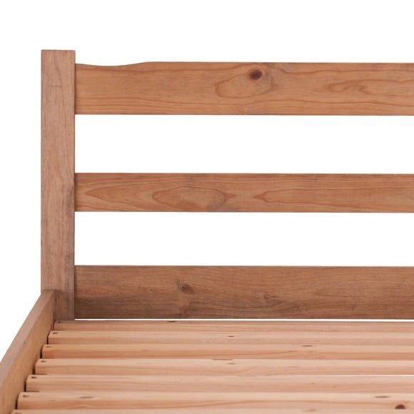 Give your bedroom a rustic revival with the Panama Bed. Offering style and comfort, this bed has been carefully crafted from solid pine with a This solid bed frame has been beautifully crafted from solid pine with a beautiful natural oak wax finish. Featuring a strong slatted head and foot end, the Panama Bed is sure to be a lasting addition to your bedroom.