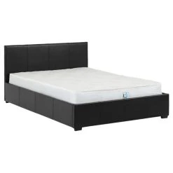 A faux Black leather storage bed frame with an ottoman lift slatted base. Combining practicality and minimal design, the Waverley Faux Leather Storage Bed Frame will provide you with a large amount of bedroom storage space whilst also offering a comfortable and supportive sleeping environment. The sprung slatted base integrated into the bed’s design offers a more natural platform to sleep on and opens up to an easy access storage area to give you a great place to keep your bedroom essentials. What is more, the large headboard gives you a brilliant means of resting in the comfort of your own bed when not sleeping.