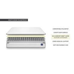 A hypoallergenic mattress, made to offer a medium firm feel with a sumptuous pillowtop finish for additional comfort.