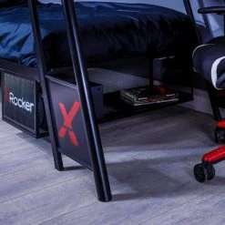 Assemble your gaming squad with the X Rocker Armada Dual Gaming Bunk Bed, perfect for sleepovers or siblings, this bunk bed is designed with space saving solutions for 2 standard UK single beds in low and high sleeper positions, to sleep 2 kids or junior gamers. The bed also features spacious under-bed storage with a built-in gaming desk to the side, sized to allow screens up to 32” for the ultimate gaming set up and a mesh storage shelf for all your gaming gear.
