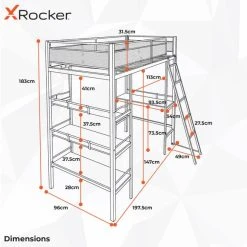 Prepare to conquer your gaming battles with X Rocker’s innovative Fortress Gaming High Sleeper Bunk Bed with Shelves & Desk. This versatile set up is excellent for gaming and equally practical for a child’s bedroom with a strong and durable metal frame construction to provide stability, long-lasting comfort and features spacious under-bed storage with a built-in desk, and 3 generous shelves to store consoles, accessories and PC hardware. The integrated desk space or TV stand is sized to house PC monitors up to 40” for the ultimate gaming set up.
