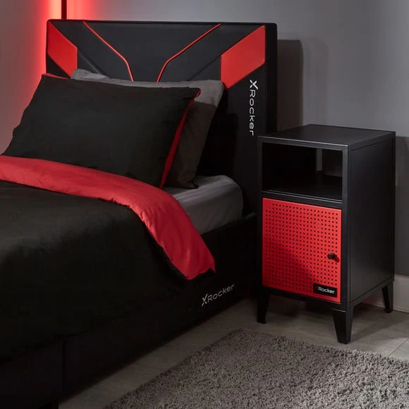 Keep your bedside essentials close by with the X Rocker MESH TEK Bedside Cabinet with Single Cube Storage. Constructed from robust steel in a powerful red and black colour scheme, this single unit bedside table is designed with a free-standing structure and offers flexible storage which can be paired with other items in the Mesh Tek range for an extended modular design. With open shelving to display collectables, to keep phones, remote control and other bits at hand, this storage unit has considered visilbility and accessibility. To organise clutter, the perforated cabinet door provides a stylish storage solution with optimal air ventilation so your consoles, devices and other personal items won’t become overheated.