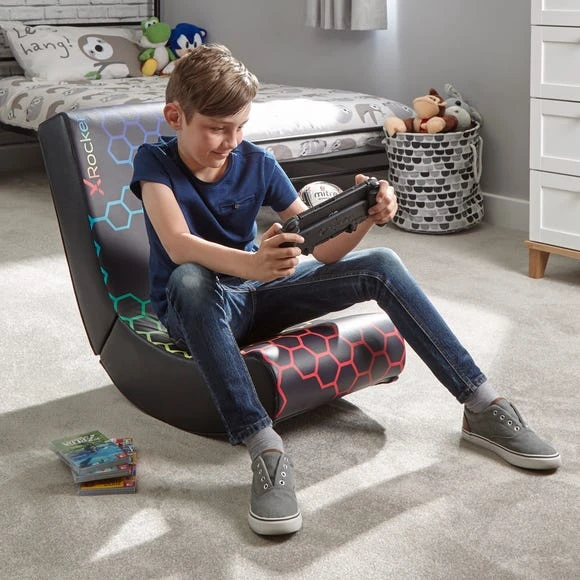 Built for junior gamers, X Rocker’s Video Rocker Neo Hex gaming chair is designed as a floor-style gaming chair, made for comfort with a generous foam padded filling and a rich faux leather material to offer soft, durable and long-lasting support. The printed multicoloured design is perfect to suit any bedroom, games room or living room and is constructed with a compact folding frame so it’s easy to assemble and convenient to store in smaller spaces.